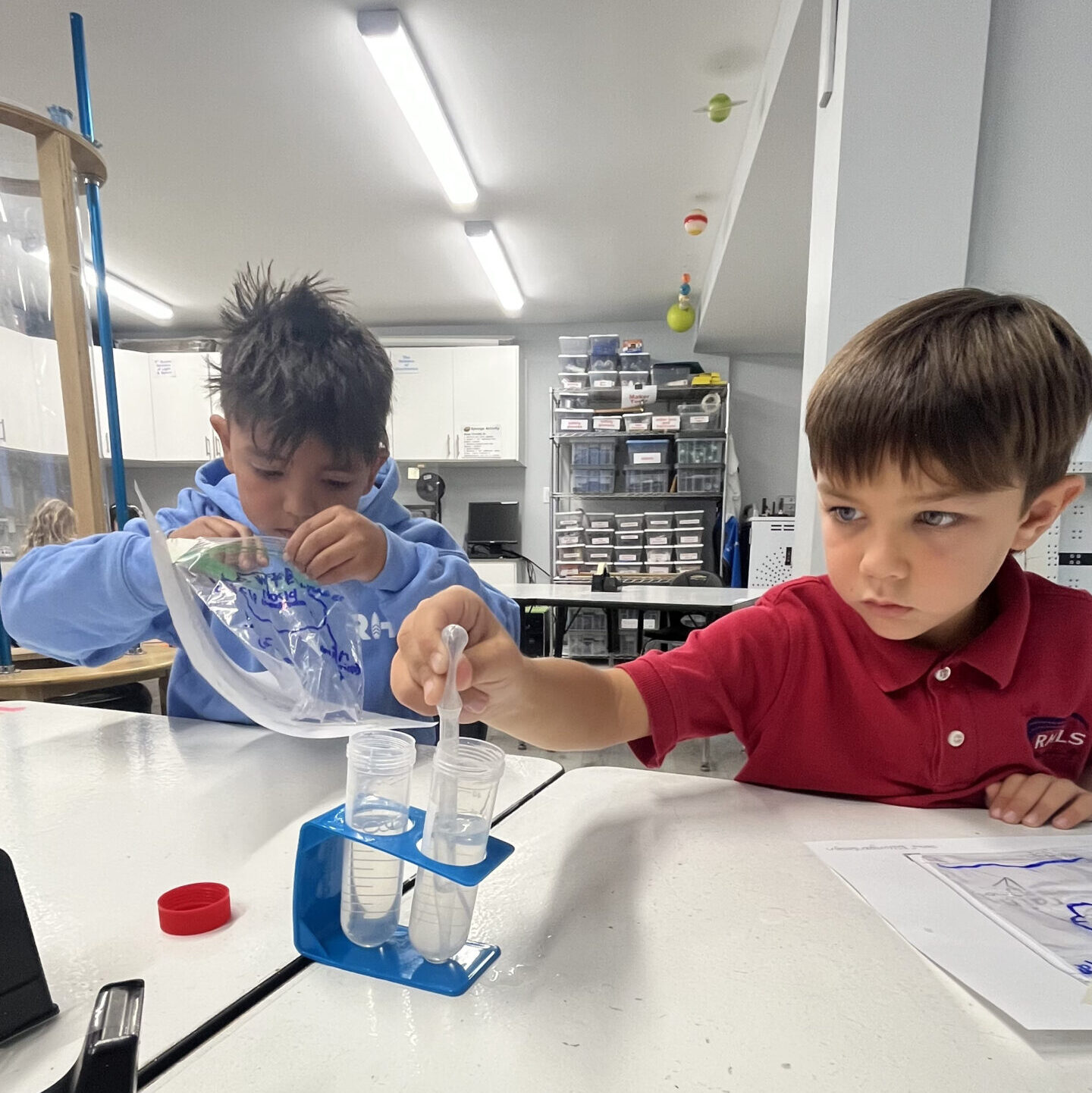 In Kindergarten, technology is used sparingly. A smart board in the front of the class is used for projecting project instruction and “brain breaks.” iPads are used for weekly technology classes, where students learn to use technology with respect, sign in and sign out independently, and learn foundational concepts for programming, which supports critical thinking and number sense skills.